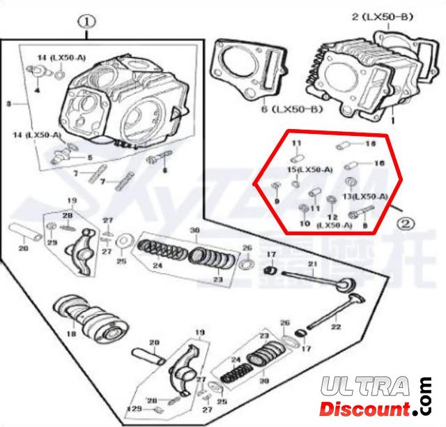 Questo set di accessori è destinato alle culatte del motore Skyteam 50ccMotore Dax Ricambi Dax Skymax